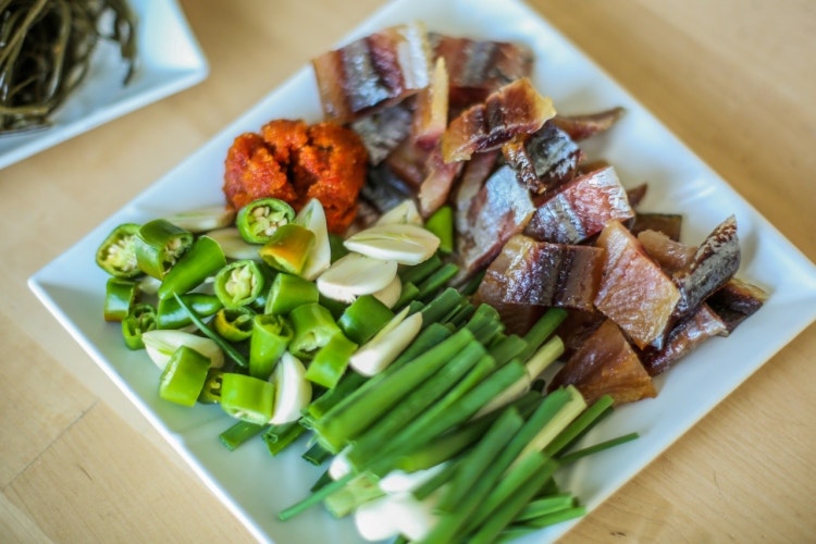 과메기는 겨울 바다를 느낄 수 있는 최적의 재료인데요, 초고추장과 김 혹은 미역과 함께 과메기 쌈으로 먹으면 맛이 최고입니다. 과메기 는 고단백 식품으로 단백질 보충에 좋다고 하네요.